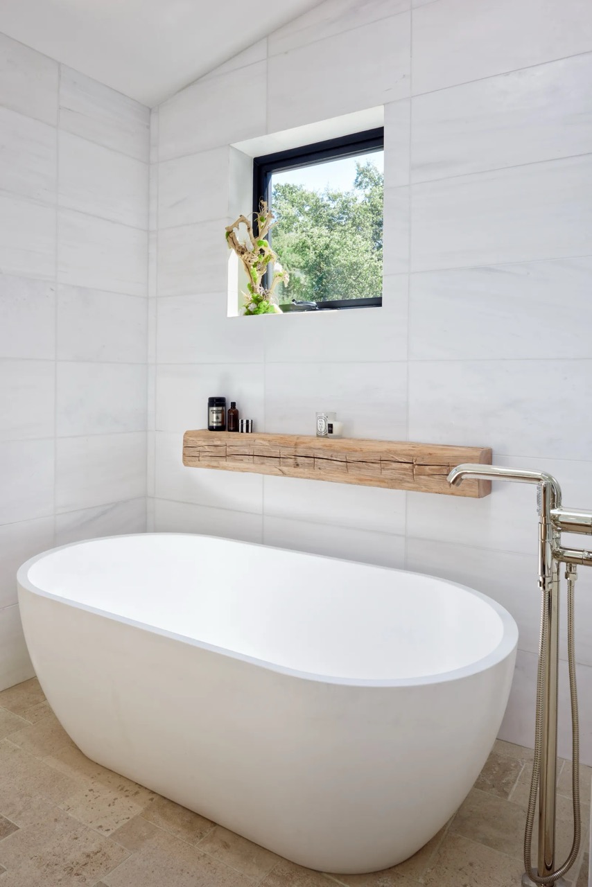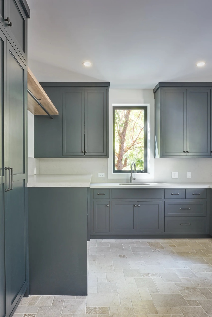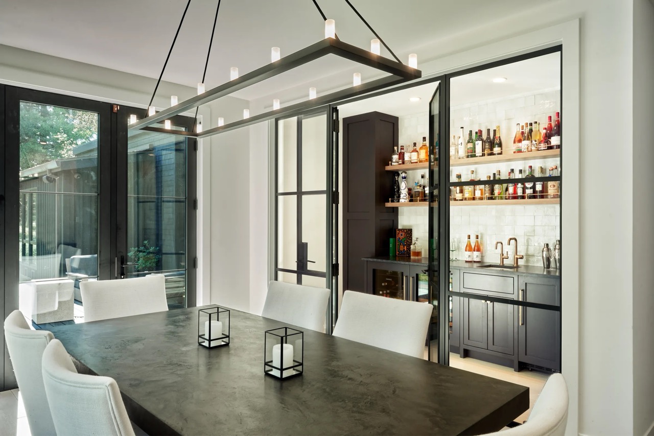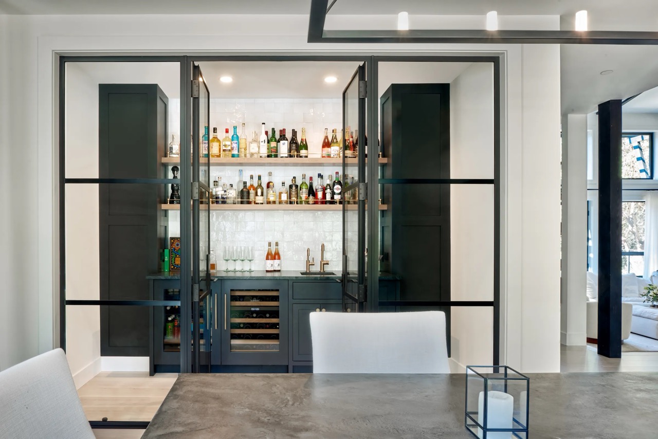 Dark, moody colors and built-in library shelving make this space relaxing and private.